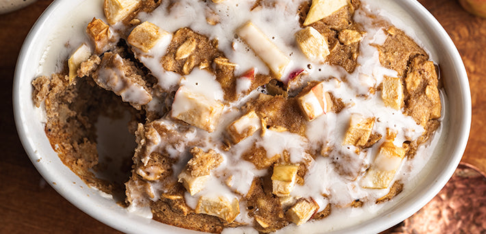 Stir in 3/4 of the diced apple. Transfer to ramekin, smoothing out the top before adding the remaining chopped apple.